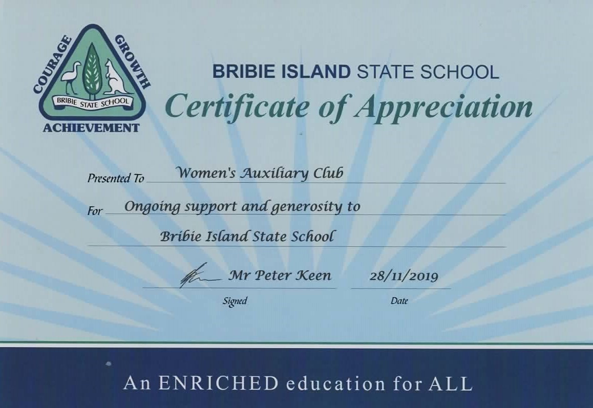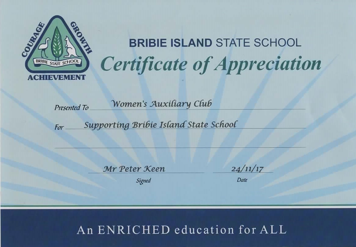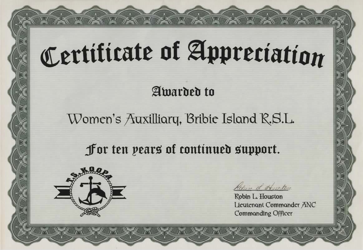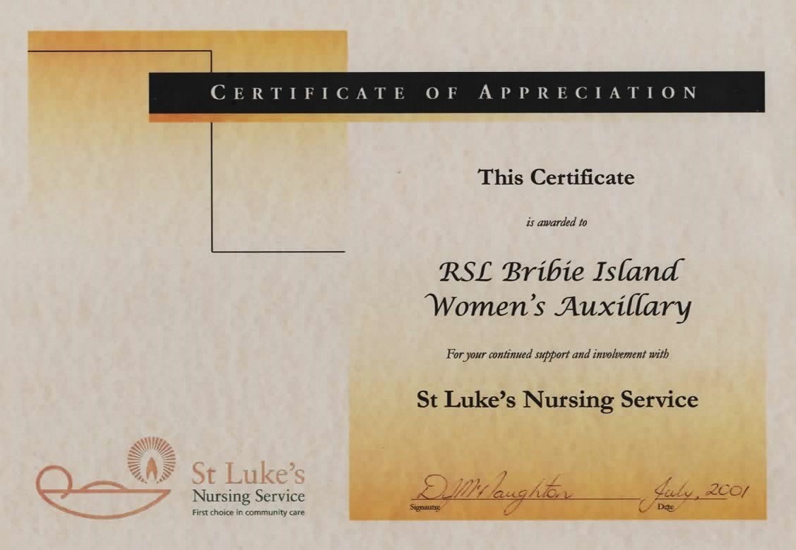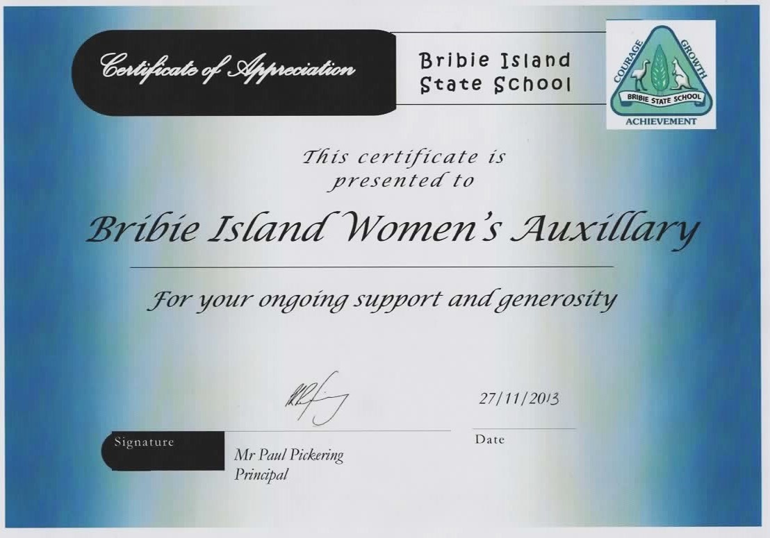 Certificates presented to the Women’s Auxiliary