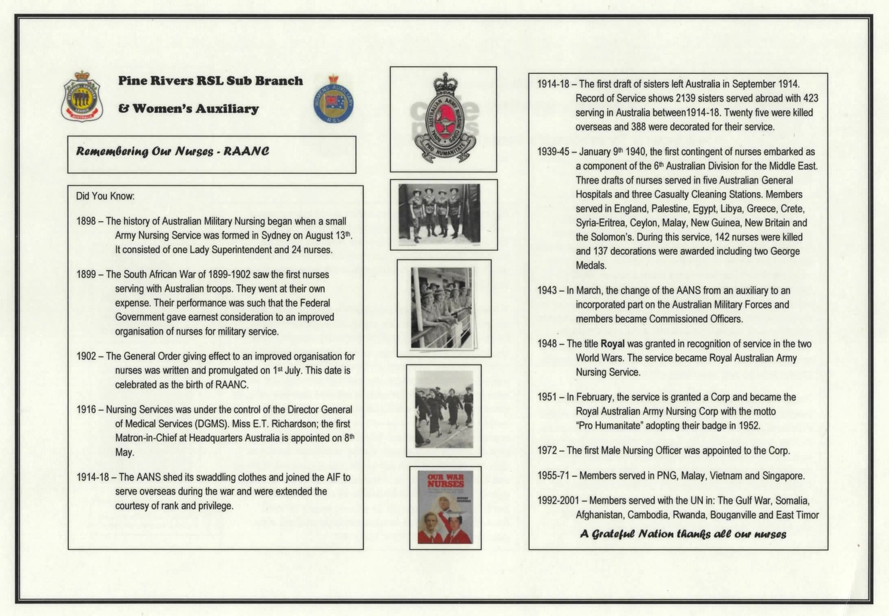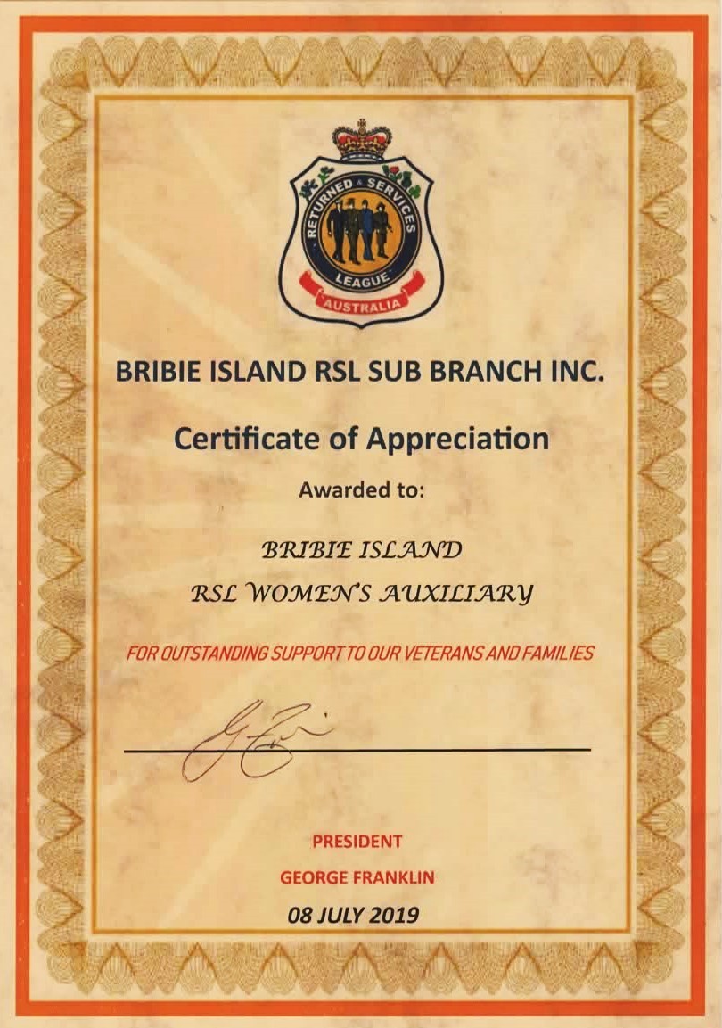 The official website of the Bribie Island RSL Sub-Branch Women's Auxiliary